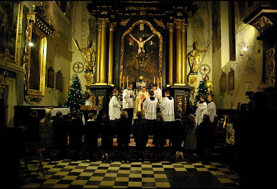 OREMUS. Omnipotens et misericors Deus qui per Moysem famulum tuum Pontificibus tabernaculos servientibus, indumenta instituisti: et per sanctos Apostolos tuos Sacerdotibus et Pontificibus Evangelicis vestimenta sacra providisti: effunde tuam sanctam Benedictionem super hos Agnos, de quorum vellere sacra Pallia pro Summis Pontificibus, Patriarchis, et Archiepiscopis conficienda sunt: ut qui eis utuntur una cum plebe sibi commissa per intercessionem B. V. et M. Agnetis (super cuius tumbam oramus) ad æternam benedictionem perducantur: Per Christum Dominum nostrum. Amen. | Let us pray. |